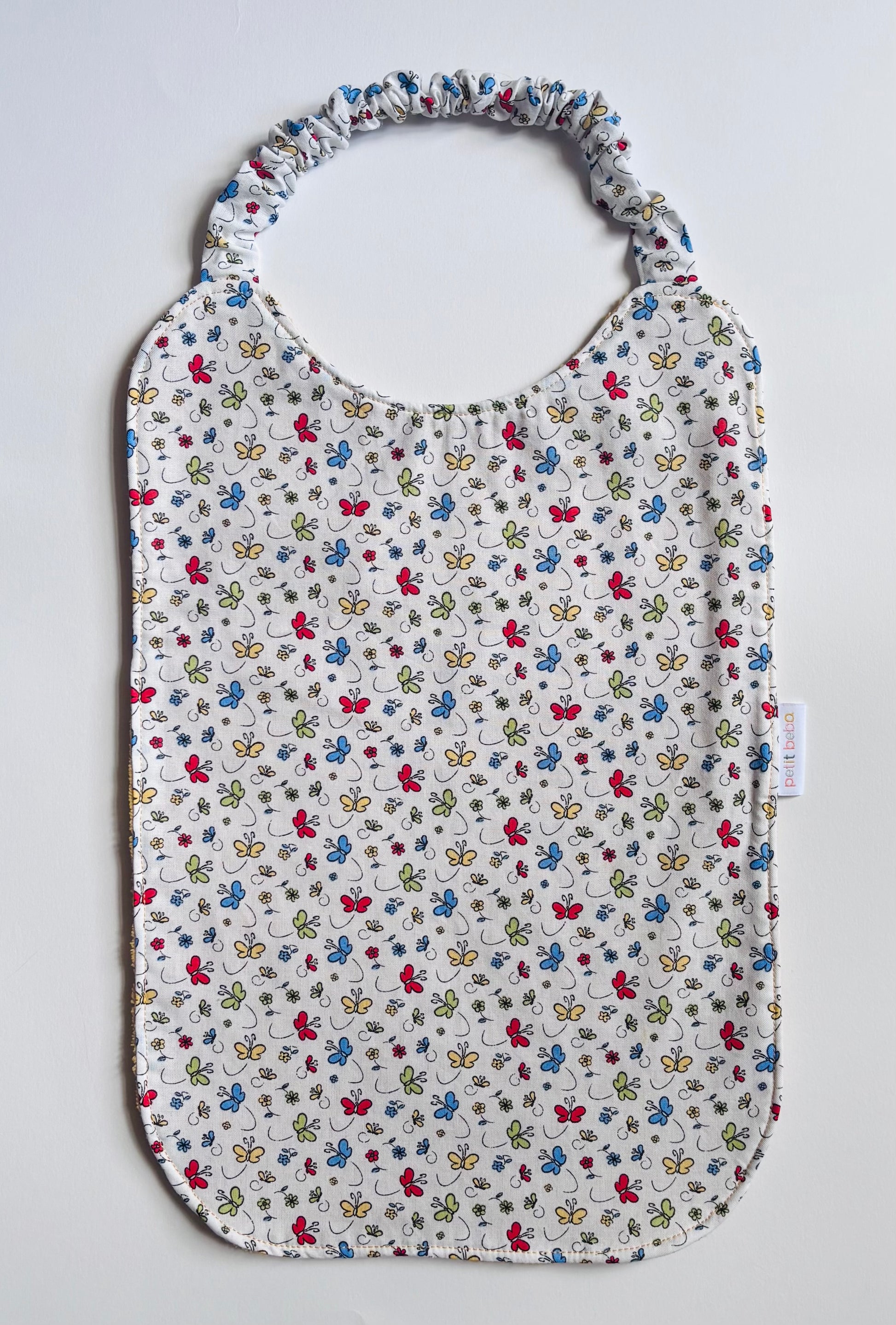 Bavoir en tissu coton et bambou en grande taille. Hauteur 46 cm (avec l'élastique). Largeur 24,50 cm