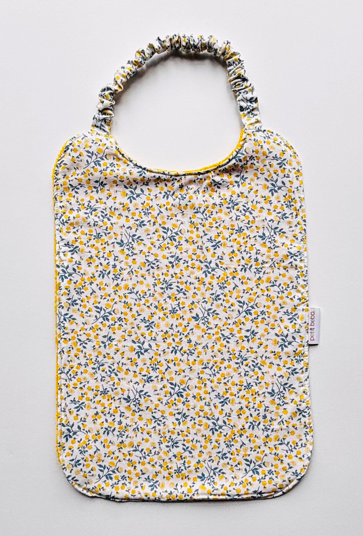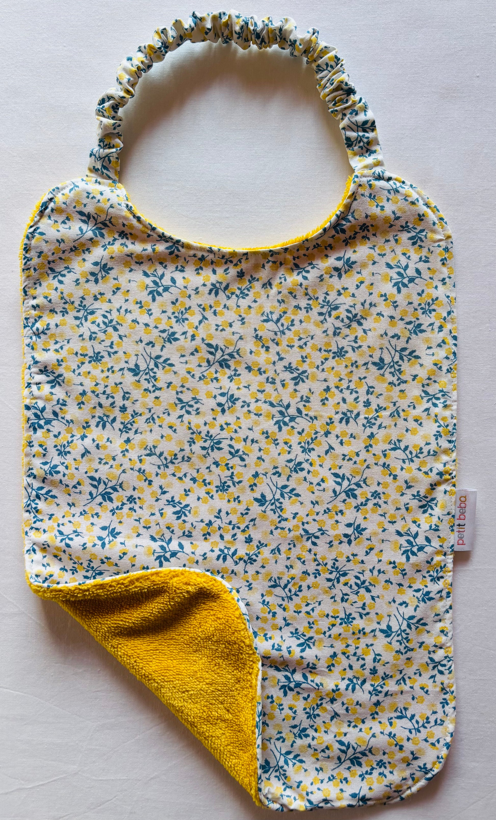 Bavoir en tissu coton et bambou en grande taille. Hauteur 44 cm (avec l'élastique). Largeur 24,50 cm